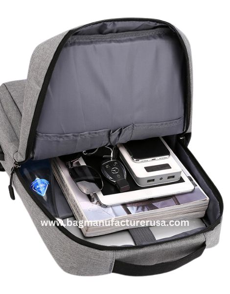 Bag Manufacturer offers bulk production of these feature-rich, 20-35L travel backpacks (perfect for men!). Crafted from durable nylon with a waterproof polyester lining, these wholesale backpacks ensure your customers’ belongings stay safe on the go. The anti-theft design offers peace of mind, while the integrated USB charging port keeps devices powered up. Featuring a comfortable arcuate shoulder strap system and a soft handle, these versatile backpacks are built for travel ease. Order your bulk custom backpack from Bag Manufacturer today!