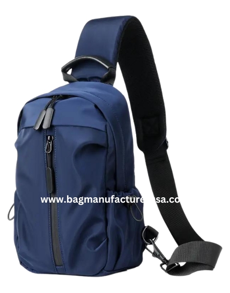 Custom brand the exterior with embroidered or printed logos for a personalized touch. Interiors of this blue leather crossbody bag provide organizational compartments and pockets. Adjustable straps ensure the perfect fit across the body.