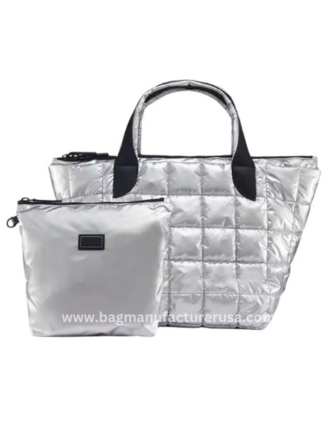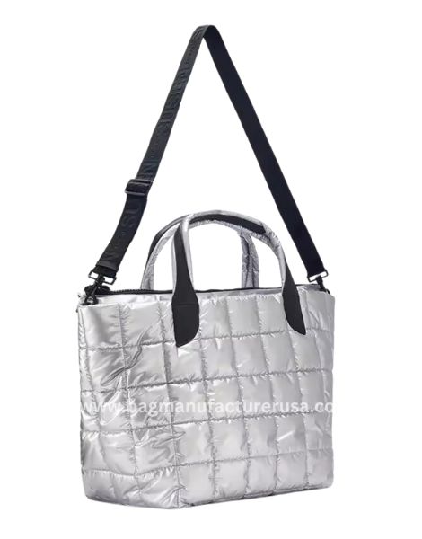Own the spotlight with our Luxury Women’s Silver Handbag! This women’s handbag is crafted with premium materials for a dazzling metallic finish. Upgrade your product line with this sophisticated women’s silver bag. Contact Bag Manufacturer USA and order bulk handbag today!